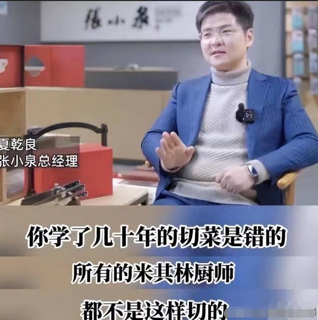 2、本来是一件很简单的事,说白了就是碳含量高,脆度太高,换一把碳含量低的刀就行了。而被哪位“张小泉”老总一解释,一把普通菜刀硬是成了米其林厨师专用刀。以后张小泉的刀如果不是某位大师用铁锤在炉火上亲手打制的签名限量款都不好意思拿出来卖。然后一定附上米其林三星御厨的签名使用手册,厚厚一本是必须的。在使用前,米其林大师也要亲临指导,才能配得上这把菜刀。