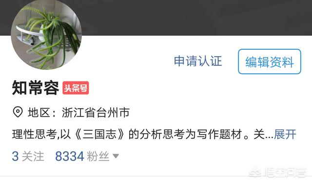 我现在在写三国志方面的文章,所以我手头有两本书,一本是资治通鉴,一本是三国志。我的名字叫知常荣,有兴趣可以关注一下。