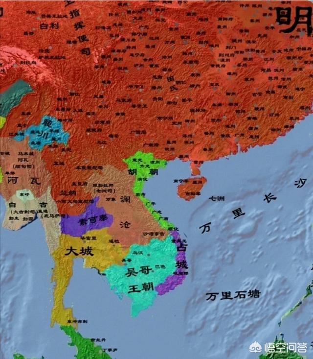 明成祖时代,越南陈朝内乱被胡朝取而代之,其末代王室前往明朝求助,没想到成祖顺水推舟,认为陈朝后裔被胡朝“灭尽,无可继承陈后”,直接派遣大军踏平了胡朝,按照内地的规制建立了州县,设立了著名的“交趾承宣布政使司”。