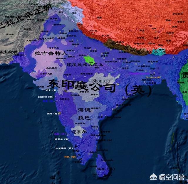 英国能够在南亚次大陆建立强大殖民统治,除了其本身走在了近代化前端,国力强大之外,也与英国对印度地区的政策有关。“印度”并非是个国家,而是一个地区的名称,当时的莫卧儿帝国土崩瓦解以后,印度分裂成数百个土邦王国,英国对这些土邦采取“各个击破”的策略,有的进行武力征服,有的进行联合。