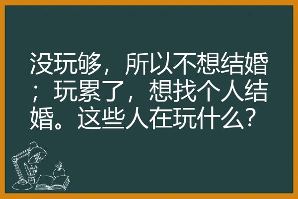 没玩够,所以不想结婚;玩累了,想找个人结婚。这些人在玩什么?
