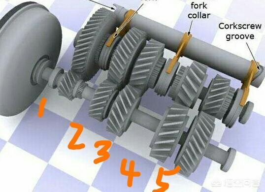 像上图,数字代表着各个档位的传动齿轮。下方是发动机输入端,从图中看,五档是一个大齿轮带动一个较小的齿轮,这样的配合可以在输出端获得较高转速,但是发动机负荷更大。如果你硬要在五档加油门来提速的话由于发动机负荷大其转速上升并不快,因此车辆提速也慢。而四挡是同样大小的两个齿轮,这样发动机负荷更小,提速时发动机转速上升更快,反应灵敏,提速更快。